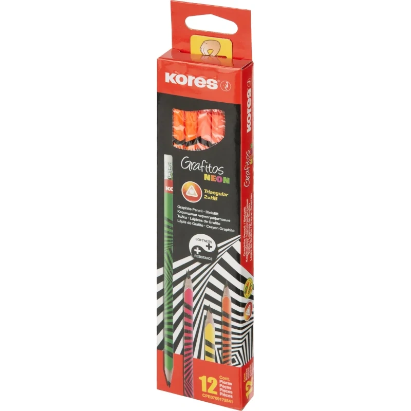 Карандаш чернографитный Kores Grafitos Neon HB, с ластиком