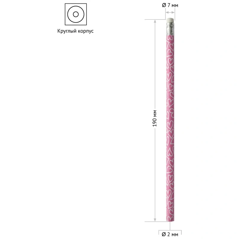 Карандаш чернографитный Officespace Сердечки HB, с ластиком, незаточенный