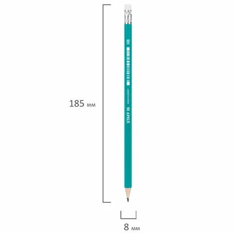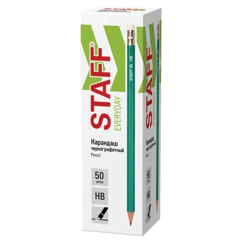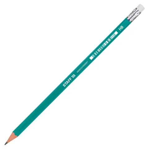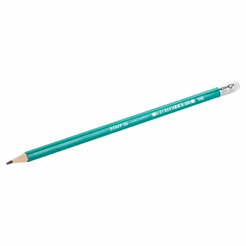 Карандаш чернографитный с ластиком STAFF EVERYDAY BLP-GRN, 1 шт., НВ, пластик., корпус зеленый, 1819