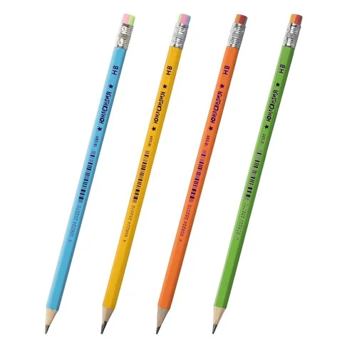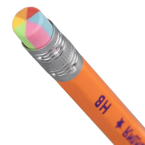 Шестигранная форма сечения корпуса позволяет не скатываться карандашу с поверхности стола во время занятий. Имеет корпус из натурального дерева. Выполнен в ярких цветах ассорти. Грифель диаметром 2,05 мм имеет твердость HB и отличается высокой прочностью. Карандаш заточен, снабжен многоцветным ластиком и поставляется в картонной коробке.
