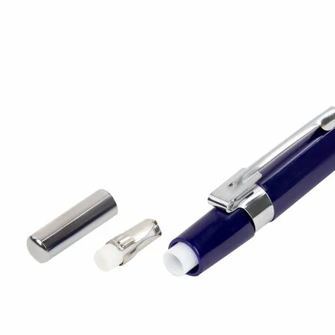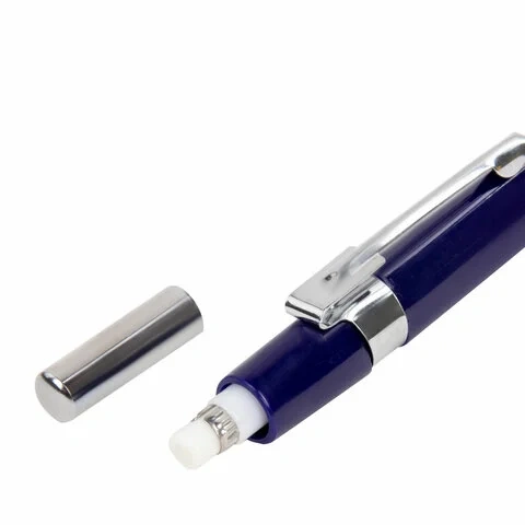 Внутренний механизм выполнен из металла, что обеспечивает карандашу высокую износостойкость. Карандаш с нажимным механизмом заправлен грифелем HB, всегда заточен и готов к работе, дает ровную линию 0,5 мм, а встроенный ластик поможет быстро и легко исправить ошибку. 12 запасных грифелей не позволят прервать ваше письмо в неподходящий момент