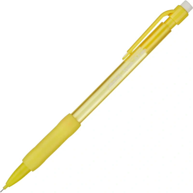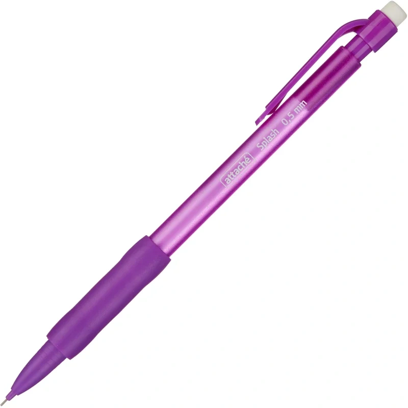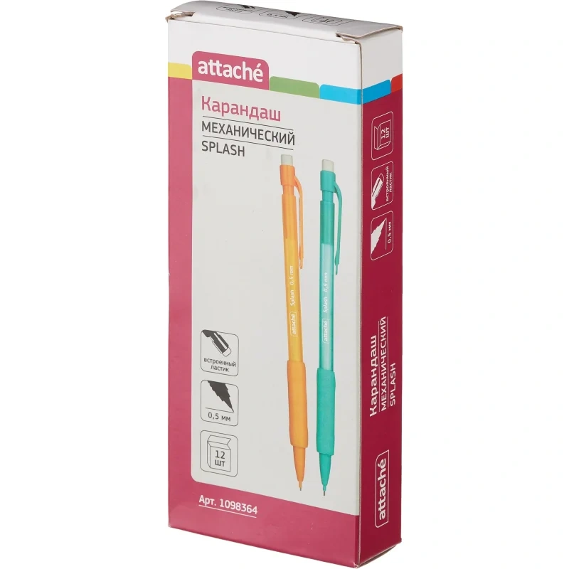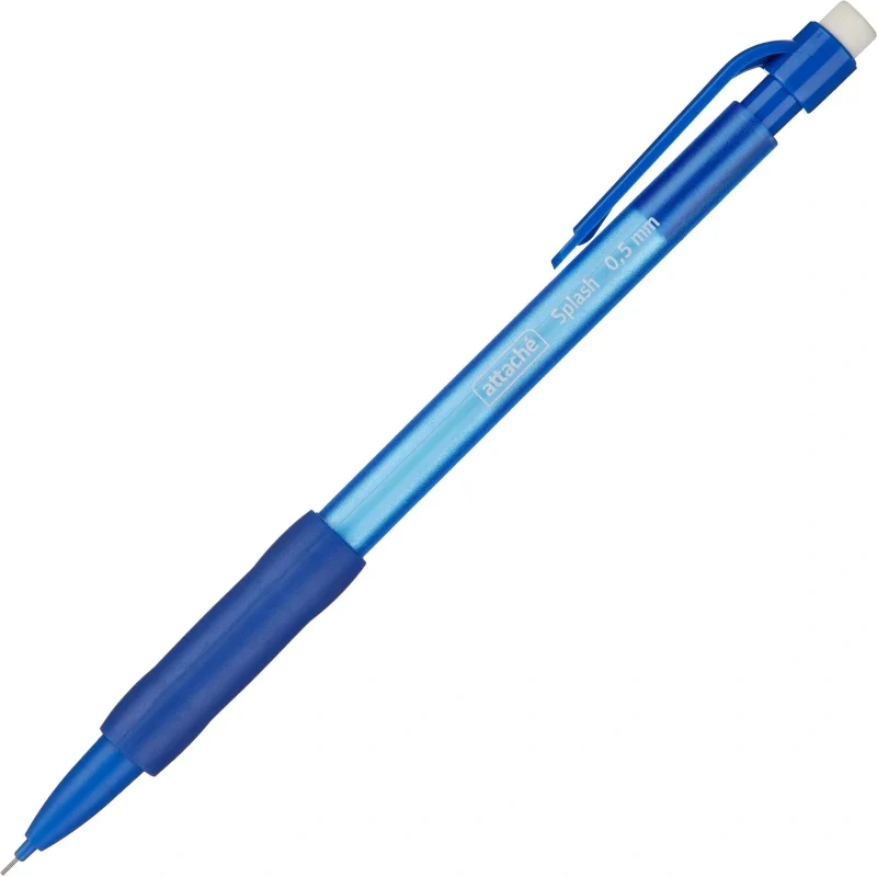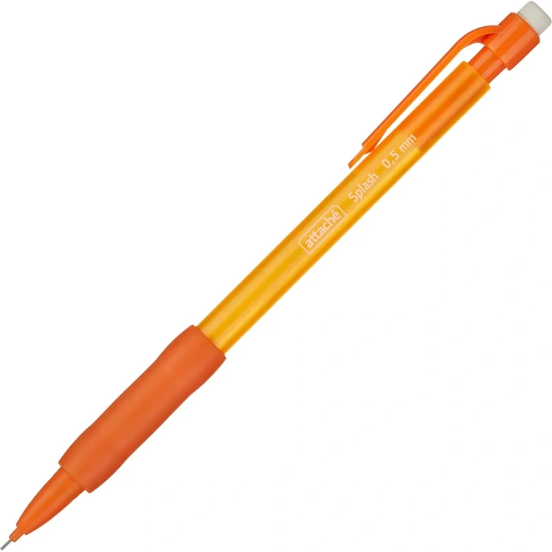 Карандаш механический Attache Splash, 0,5мм, корп.тонир.ассорти, с манжет Карандаш механический Attache Splash с толщиной линии письма 0.5 мм. Твердость грифеля НВ. Является отличным помощником в работе над документами и текстами, для рисования, для проведения проектных работ и работ по черчению. Карандаш выполнен в тонированном пластиковом корпусе насыщенных ярких цветов. Снабжен ластиком и пластиковым клипом, позволяющим закрепить карандаш в кармане или тетради для записей. Мягкая резиновая манжетка обеспечивает комфорт во время письма и препятствует скольжению пальцев. Внимание! Товар поставляется в нескольких вариантах цвета/дизайна (без возможности выбора).