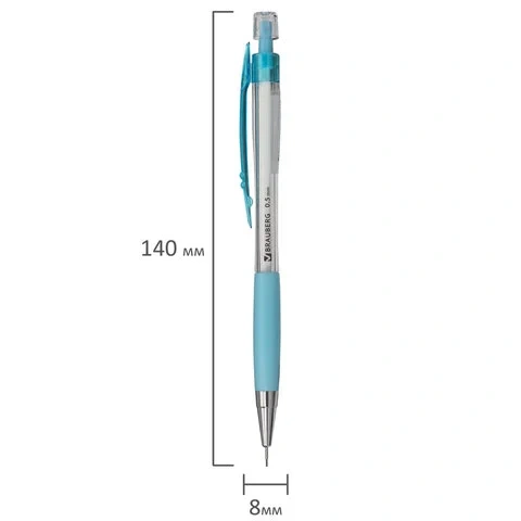 Карандаш с нажимным механизмом заправлен грифелем HB, всегда заточен и готов к работе, дает ровную линию 0,5 мм. Цанга карандаша убирается внутрь корпуса, поэтому даже на дне сумки или пенала такой карандаш не сломается. Поставляется в нескольких вариантах цвета (без возможности выбора).