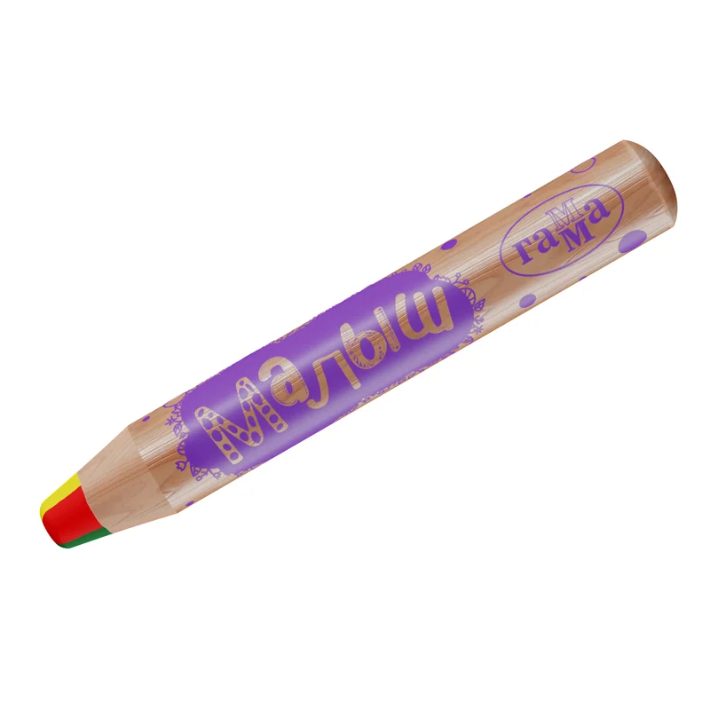 Карандаш ГАММА серии «Малыш» содержит в себе сразу 4 цвета! Утолщённый корпус разработан специально для маленькой ладошки и удобно ложится в руку юного художника. Линия на бумаге меняет цвет в процессе рисования и раскрашивания, что позволяет получать совершенно неожиданные и каждый раз новые рисунки. Изделие обладает свойствами цветного карандаша, воскового мелка и акварельных красок. Благодаря этому грифель мягко скользит по разным поверхностям: бумаге, асфальту, стеклу, металлу.