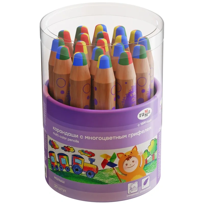 Карандаш с многоцветным грифелем Гамма 'Малыш', утолщенный, заточен., в пластиковой тубе