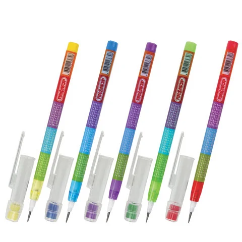 Карандаш не требует заточки, благодаря 9 сменным стержням готов к продолжению работы в любой момент, достаточно просто поменять исписанный стержень на новый. Имеет ластик. Твердость - HB. Пластиковый тонированный корпус ассорти (поставляется в нескольких вариантах цвета без возможности выбора.