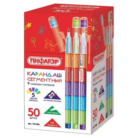 Яркий и удобный сегментный карандаш с ластиком 'Пифагор'- отличный выбор по доступной цене.
