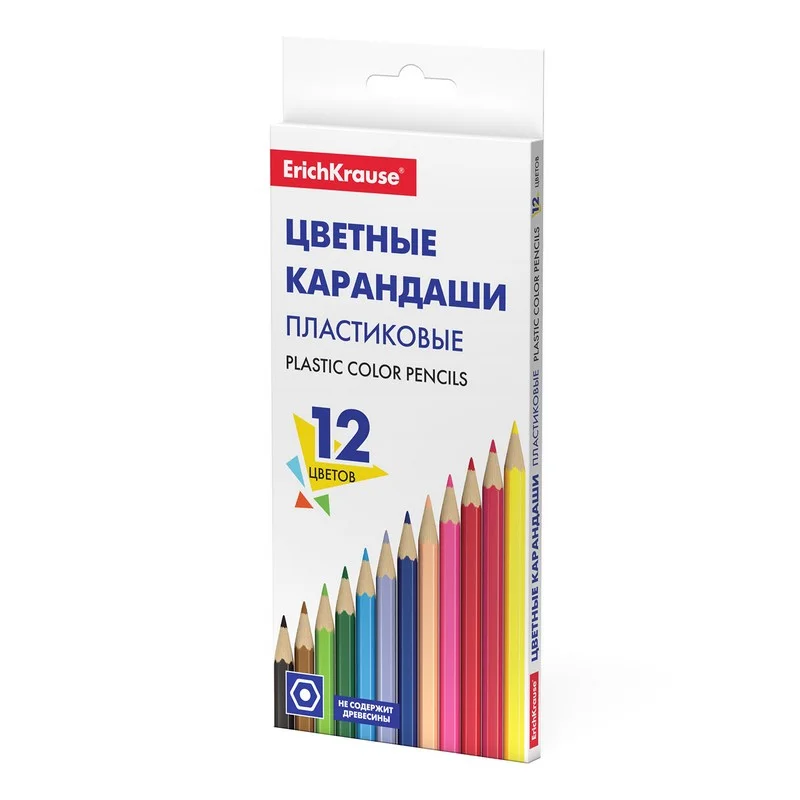 Пластиковые цветные карандаши ErichKrause Basic представлены широкой палитрой оттенков, которые хорошо смешиваются между собой, позволяя создавать рисунки любой сложности. Благодаря шестигранной форме, карандаши удобно лежат в руке и не скатываются с поверхности. Специальная технология изготовления карандаша методом экструзии надежно фиксирует грифель к корпусу, что обеспечивает высокую ударопрочность. Идеальная центровка грифеля и пластичность материала карандаша гарантирует легкую заточку с экономным расходом карандаша. Грифель диаметром 2.6 мм не ломается и не крошится даже при сильном нажиме. Цвета в наборе: 1. Желтый, 2. Оранжевый, 3. Красный, 4. Розовый, 5. Лососевый, 6. Лиловый, 7. Синий, 8. Голубой, 9. Салатовый, 10. Зеленый, 11. Коричневый, 12. Черный.