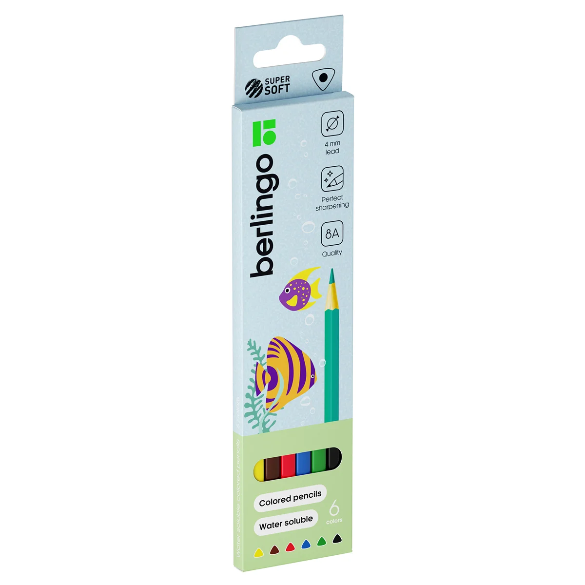 Карандаши акварельные Berlingo 'SuperSoft. Рыбки', 06цв., трехгран., заточен., картон, европод