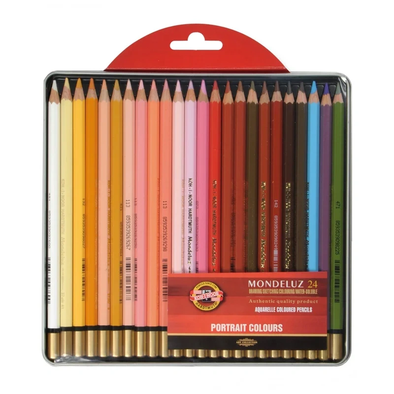 Карандаши акварельные Koh-I-Noor 'Mondeluz Portrait 3724', 24цв, заточен., метал. пенал