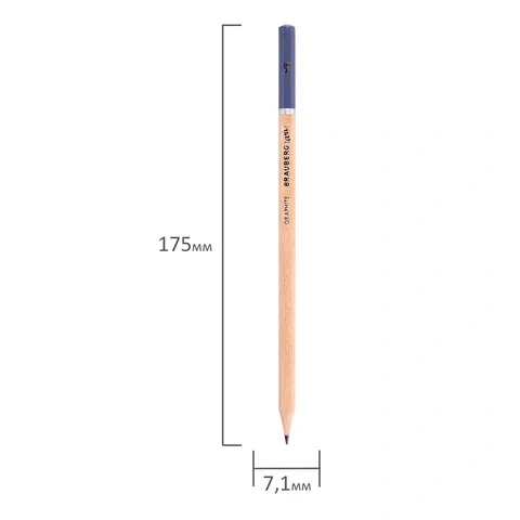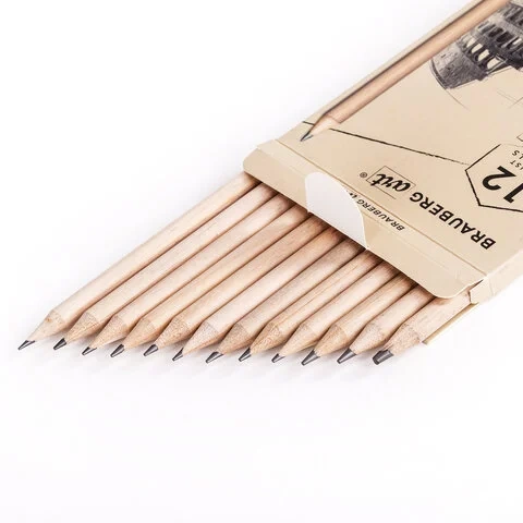 Карандаши изготовлены из дерева высокого качества. Имеют круглое сечение. Карандаши длиной 176 мм легко точатся и не крошатся. Набор состоит из карандашей различных степеней твердости – 4H - 1 штука (диаметр грифеля 2,0 мм), 3H - 1 штука (диаметр грифеля 2,0 мм), 2H - 1 штука (диаметр грифеля 2,0 мм), H - 1 штука (диаметр грифеля 2,0 мм), HB - 1 штука (диаметр грифеля 2,0 мм), B - 1 штука (диаметр грифеля 2,2 мм), 2B - 1 штука (диаметр грифеля 2,4 мм), 3B - 1 штука (диаметр грифеля 2,45 мм), 4B - 1 штука (диаметр грифеля 2,45 мм), 5B - 1 штука (диаметр грифеля 3,0 мм), 6B - 1 штука (диаметр грифеля 3,0 мм), 8B - 1 штука (диаметр грифеля 3,5 мм). Корпус лакированный с серыми деталями. Поставляются заточенными.