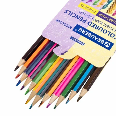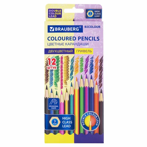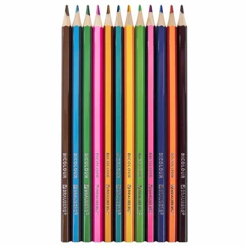 Карандаши с двухцветным грифелем BRAUBERG BICOLOUR, 12 штук, 24 цвета, 181855