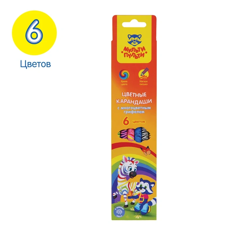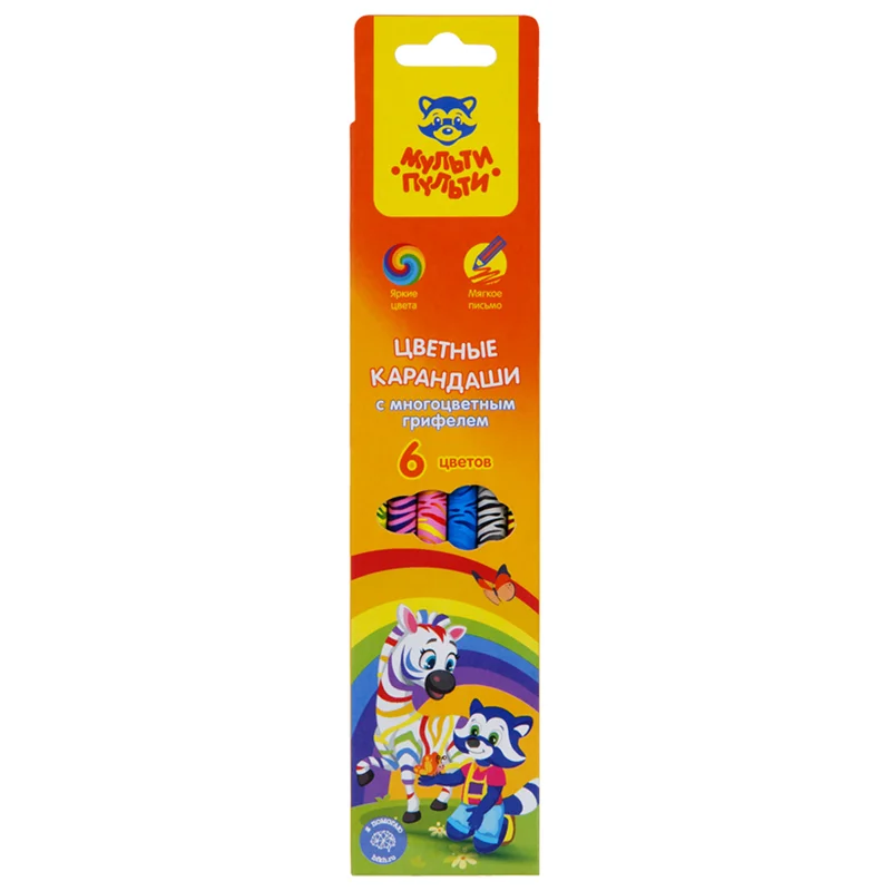 Карандаши с многоцветным грифелем Мульти-Пульти 'Енот и радуга', 06цв., заточен., европодвес