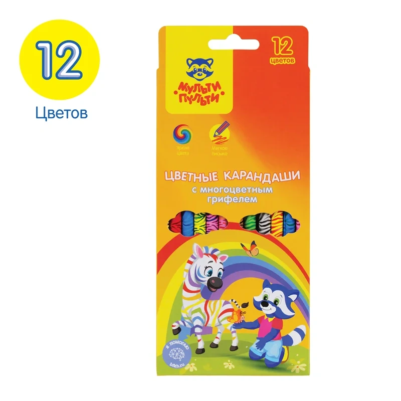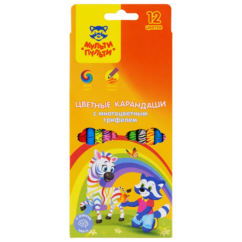 Карандаши с многоцветным грифелем Мульти-Пульти 'Енот и радуга', 12цв., заточен., европодвес