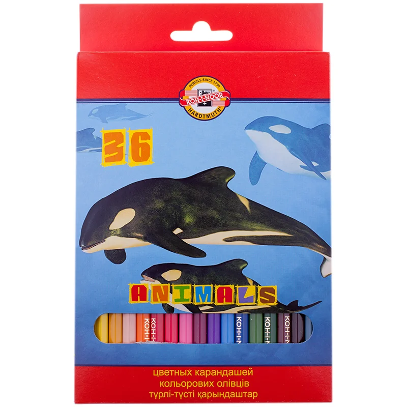 Карандаши цветные 36 ЦВЕТОВ KOH-I-NOOR 'Animals', заточенные, 3555/36, 3555036008KSRV
