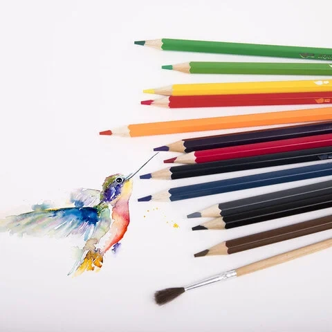 Кисть входит в комплект, поэтому её не нужно приобретать дополнительно. Всё необходимое для творчества в одном наборе! Все карандаши заточены и поставляются в картонной упаковке с европодвесом.