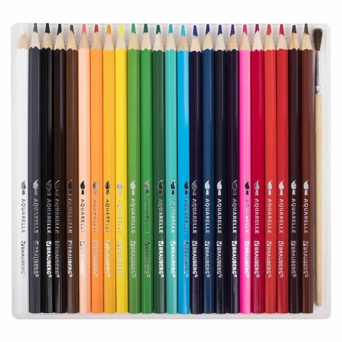 Карандаши цветные акварельные классические мягкие BRAUBERG, 24 цвета, с КИСТЬЮ, 181849