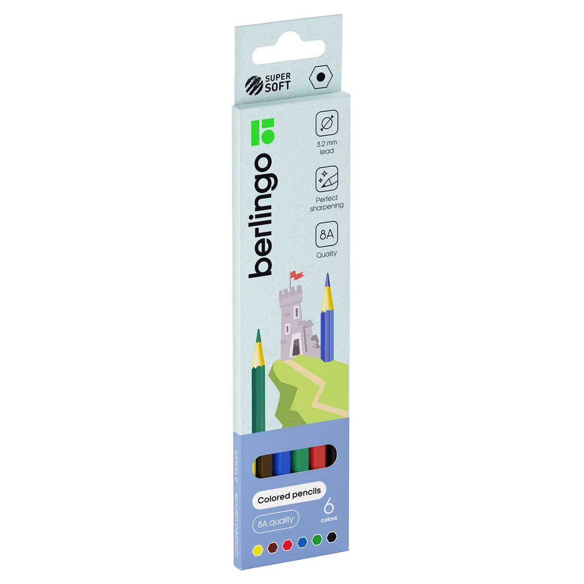 Карандаши цветные Berlingo 'SuperSoft. Замки', 06цв., заточен., картон, европодвес