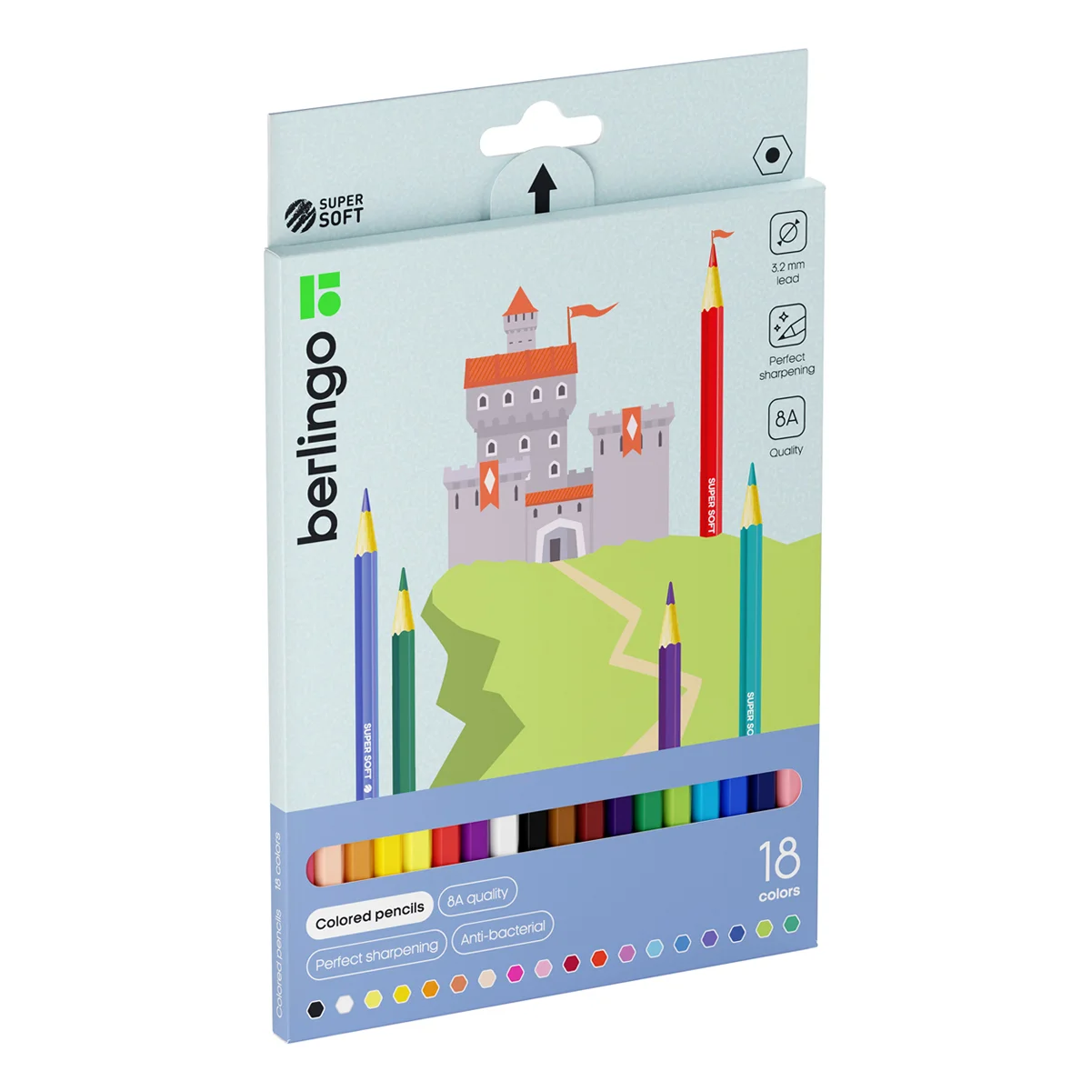 Карандаши цветные Berlingo 'SuperSoft. Замки', 18цв., заточен., картон, европодвес