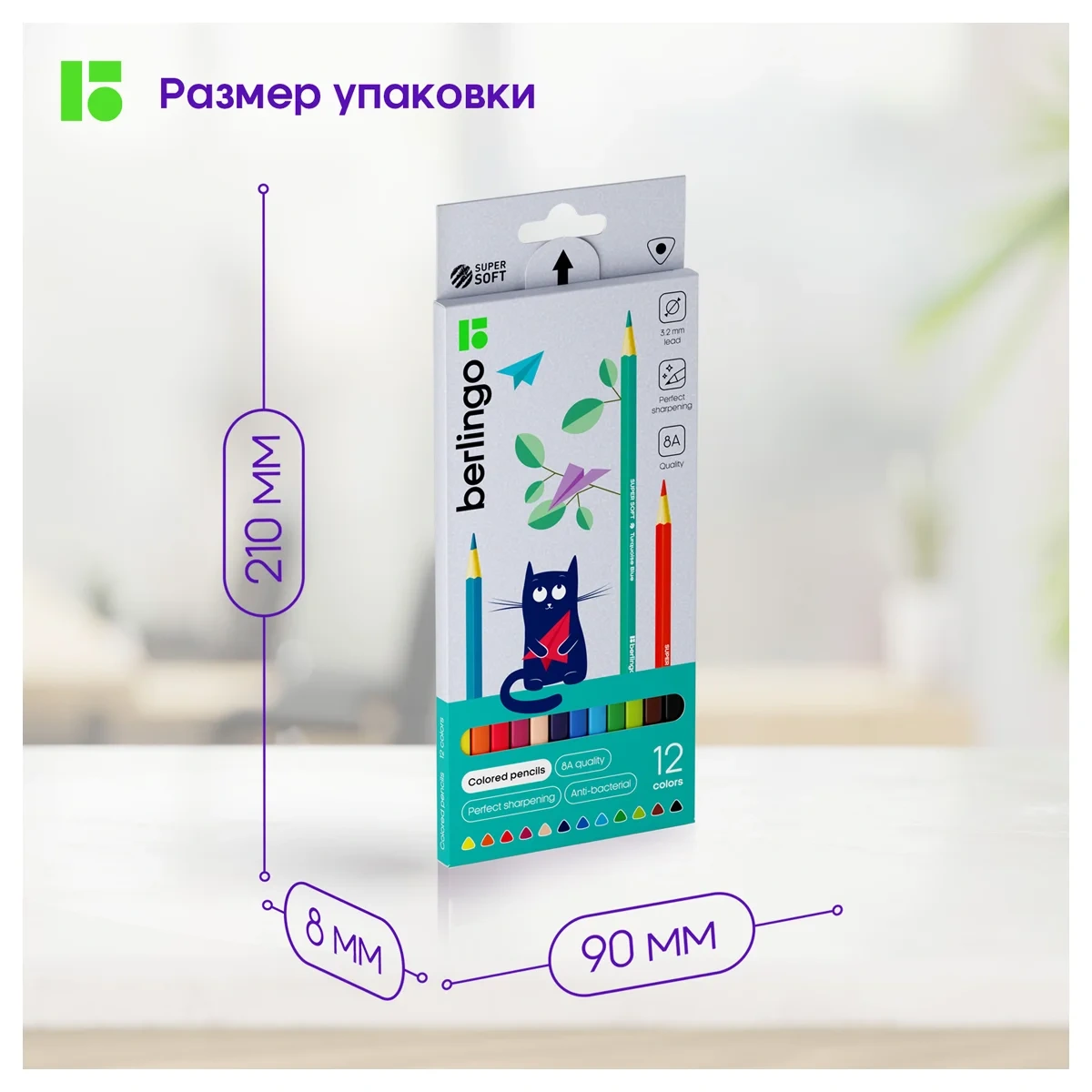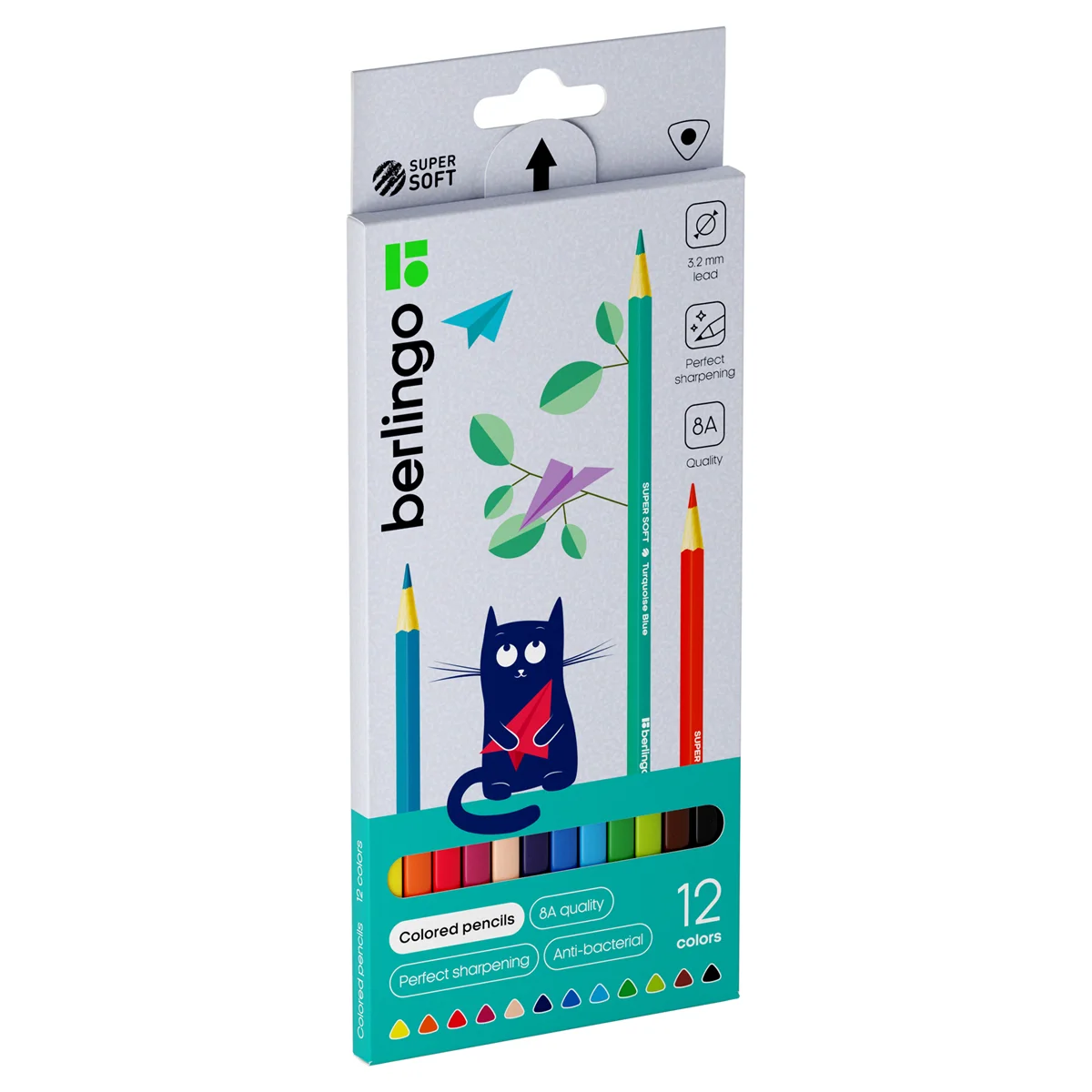 Карандаши цветные Berlingo 'SuperSoft. Жил-был кот', 12цв., трехгран., заточен., картон, европодвес