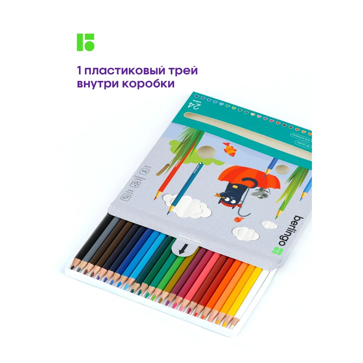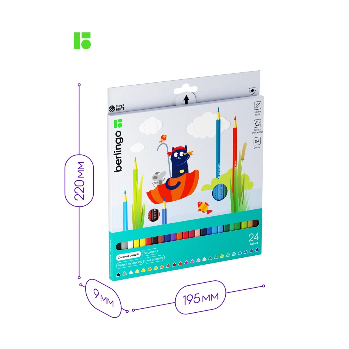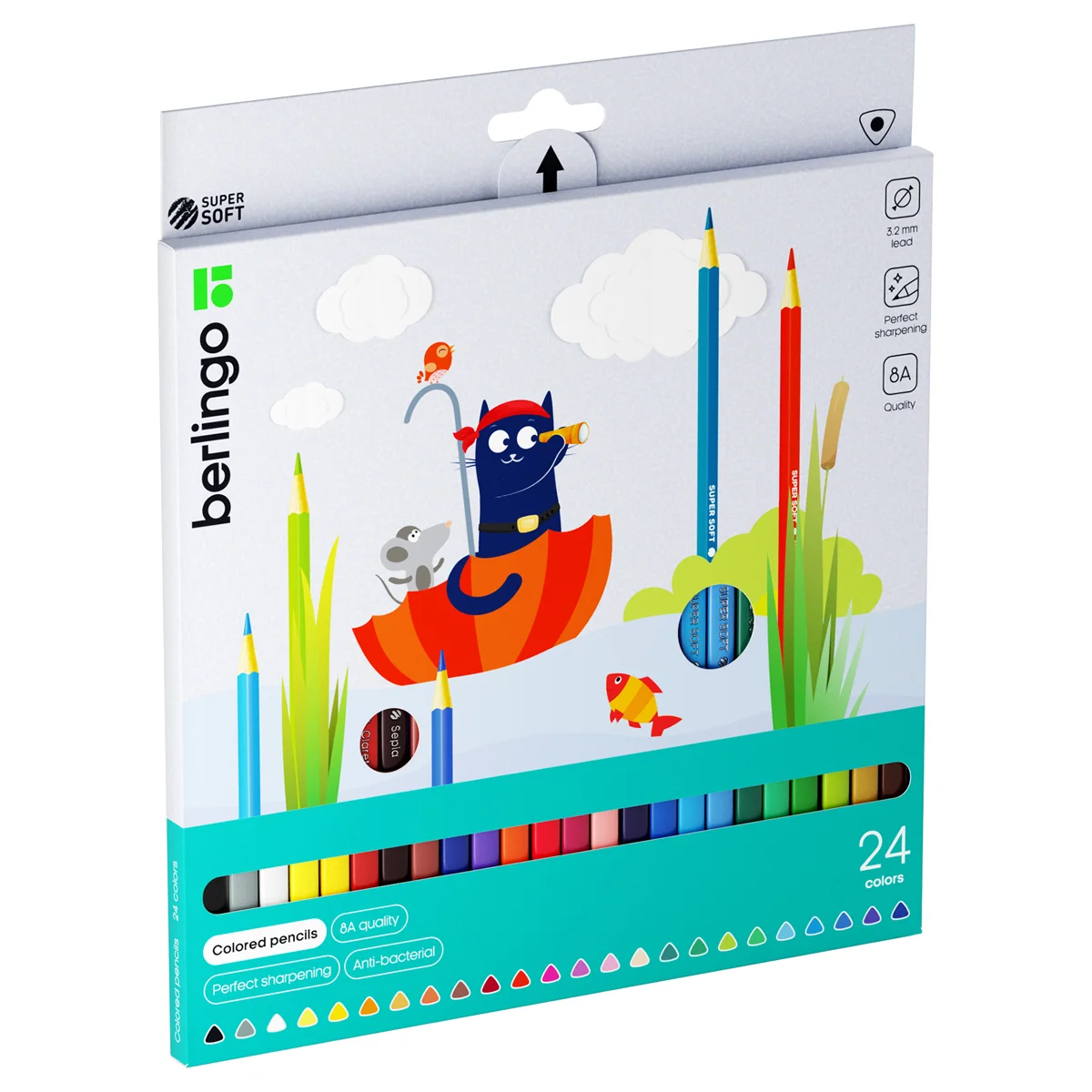 Карандаши цветные Berlingo 'SuperSoft. Жил-был кот', 24цв., трехгран., заточен., картон, европодвес