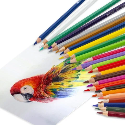 Набор состоит из 36 цветов: темно-синий, синий, фиолетовый, сиреневый, пурпурный, коралловый, розовый, бежевый, бледно-розовый, бордовый, красный, алый, темно-оранжевый, канареечный, оранжевый, желтый, бледно-желтый, белый, серебристый, золотистый, черный, серый, темно-зеленый, болотный, зеленый, бирюзовый, салатовый, бледно-зеленый, светло-серый, темно-коричневый, коричневый, каштановый, светло-коричневый, песочный, голубой, синий. Шестигранная форма сечения корпуса позволяет не скатываться карандашу с поверхности стола во время занятий рисованием. Они изготовлены из древесины ценных пород и имеют лакированный корпус. Высокосортная древесина и качество исполнения гарантируют легкую заточку. Грифель диаметром 3,3 мм обладает повышенной прочностью. Все карандаши заточены и поставляются в картонной упаковке с европодвесом.