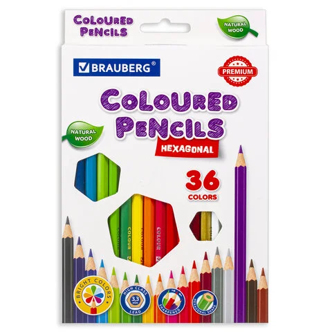 Карандаши цветные BRAUBERG PREMIUM, 36 цветов, шестигранные, грифель мягкий 3,3 мм, 181659