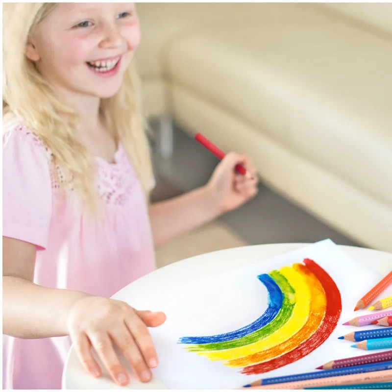 Увеличенный диаметр карандашей трехгранной формы идеально подходит для детского творчества и удобно размещается в руке юного художника.