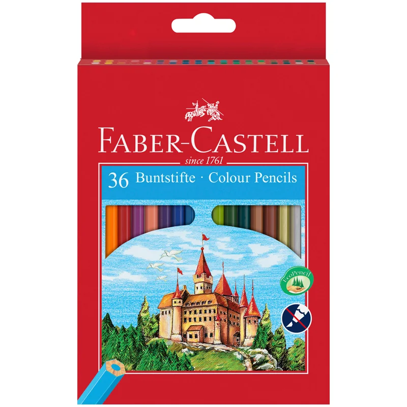 Карандаши цветные Faber-Castell 'Замок', 36цв., шестигр., заточ.+точилка, картон, европодвес