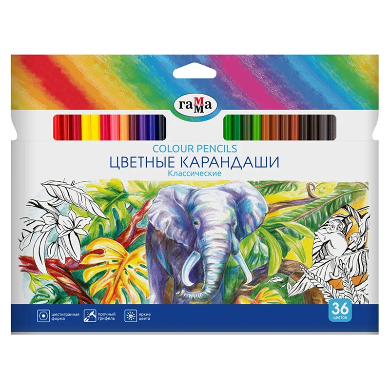 Карандаши цветные Гамма 'Классические', 36цв., заточен., картон. упаковка, европодвес