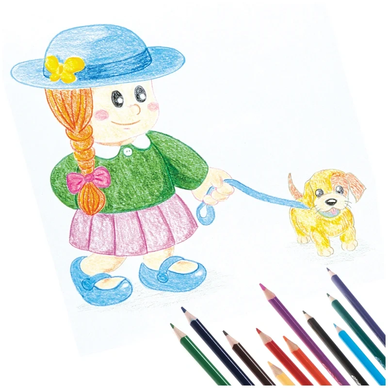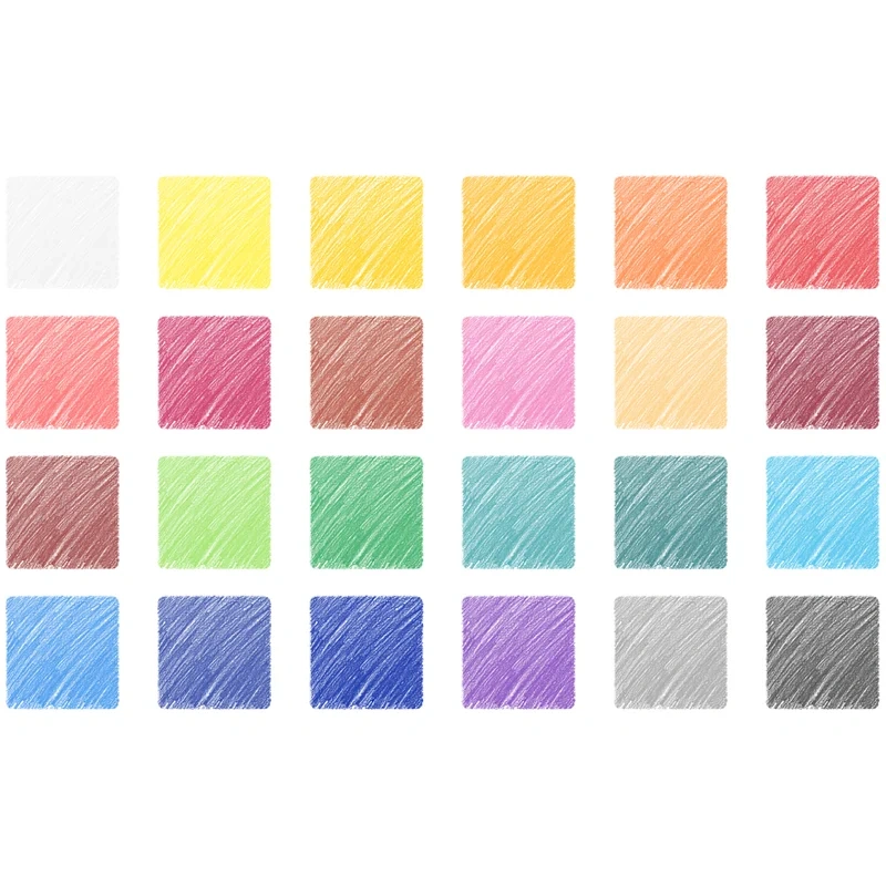 Шестигранные деревянные карандаши толщиной 7,5 мм, длиной 175 мм. Цветные карандаши в деревянном корпусе. Грифель приклеен к деревянному корпусу, что предохраняет его от поломок при падении. Рисуют на бумаге, ватмане, картоне. Расширенная палитра из 24 красивых чистых цветов (белый, лимонный, желтый, темно-желтый, светло-оранжевый, оранжевый, розовый, малиновый, рубиновый, красный, бордовый, лиловый, светло-зеленый, зеленый, темно-зеленый, бирюзовый, голубой, синий, темно-синий, сапфировый, светло-коричневый, коричневый, серый, черный).