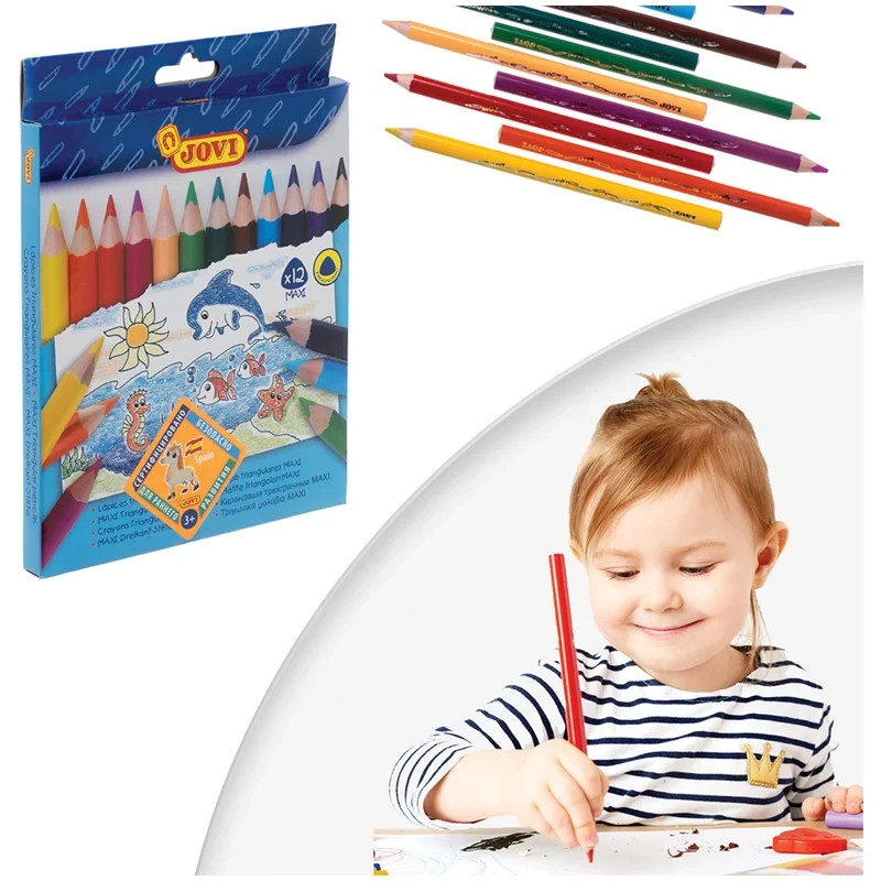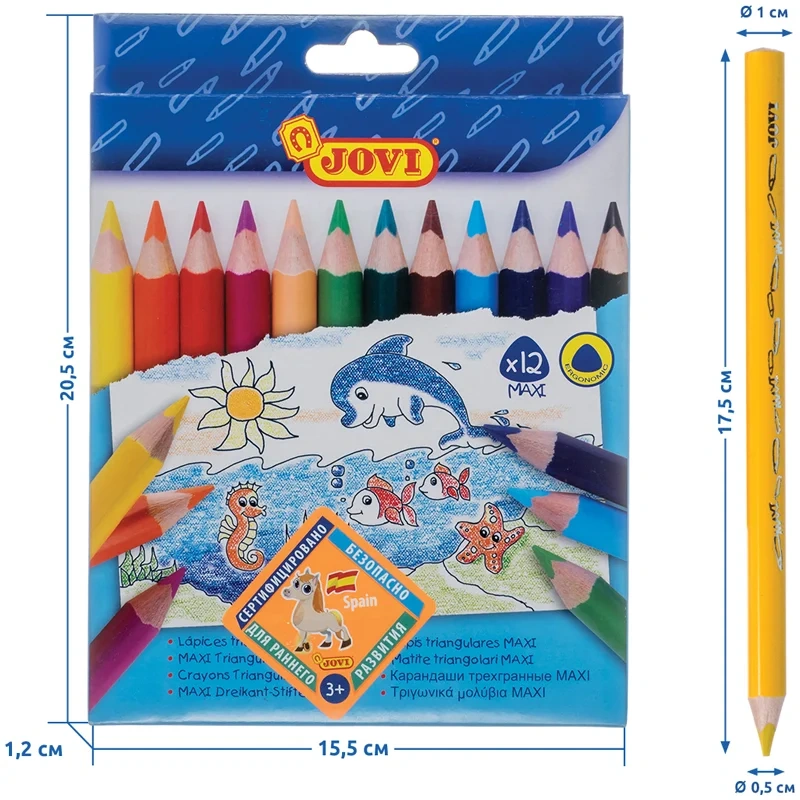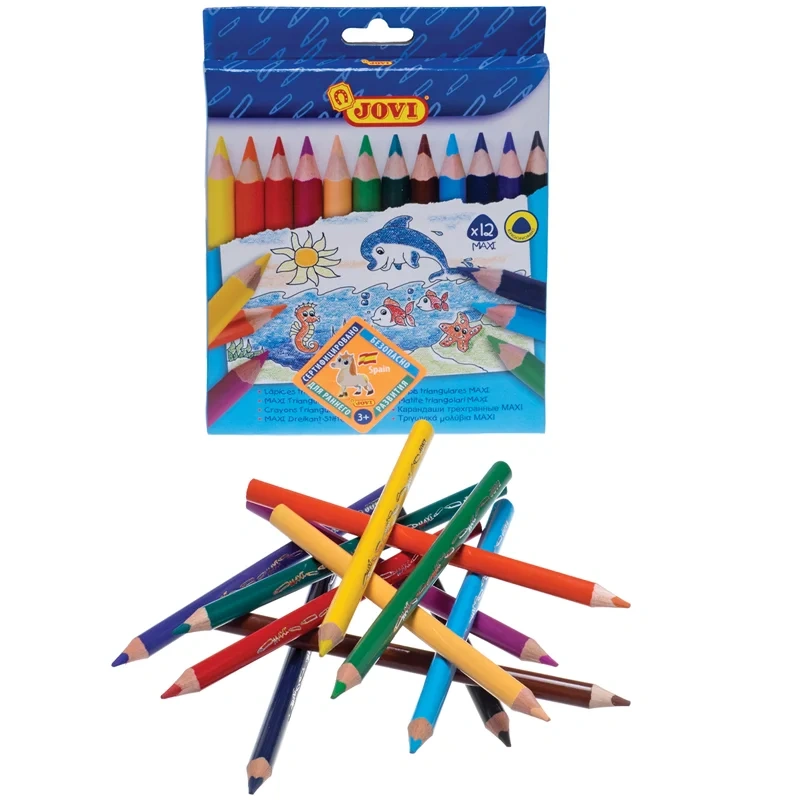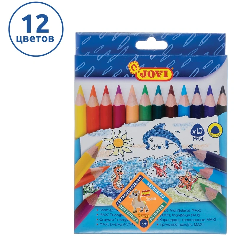 Карандаши цветные JOVI 'Maxi', 12цв., трехгран., утолщенные, заточен., картон, европодвес