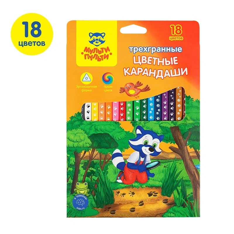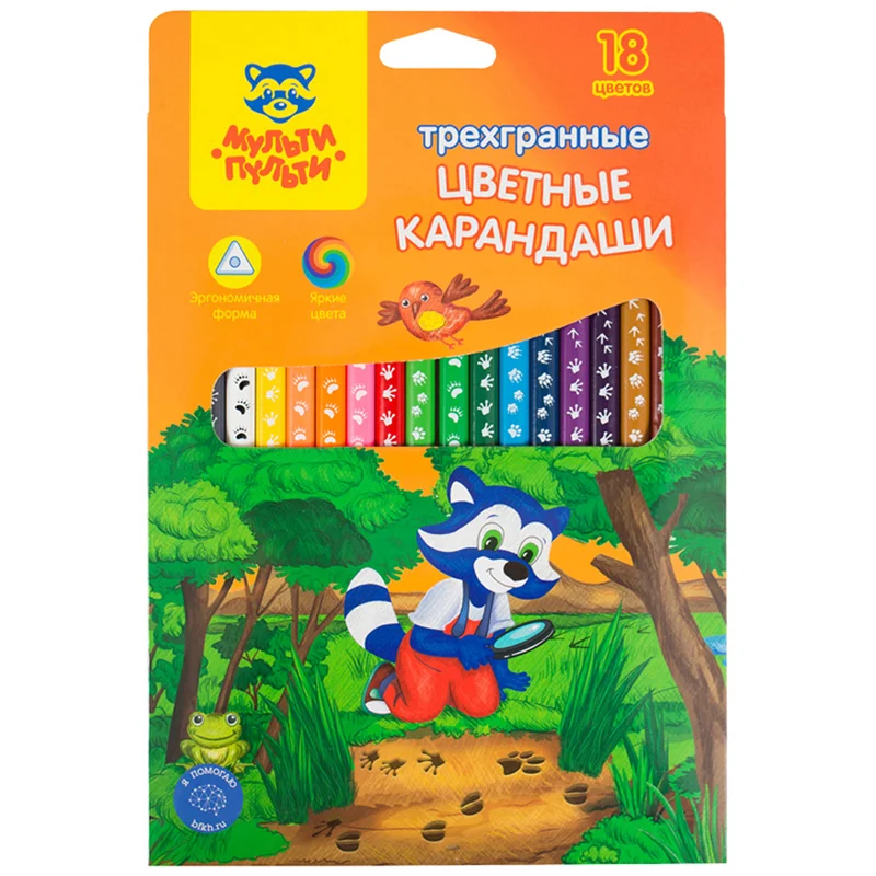 Карандаши цветные Мульти-Пульти 'Енот-следопыт', 18цв., трехгр.,рисунок на корпусе, заточен., картон