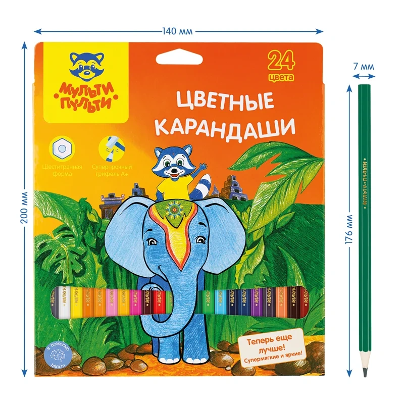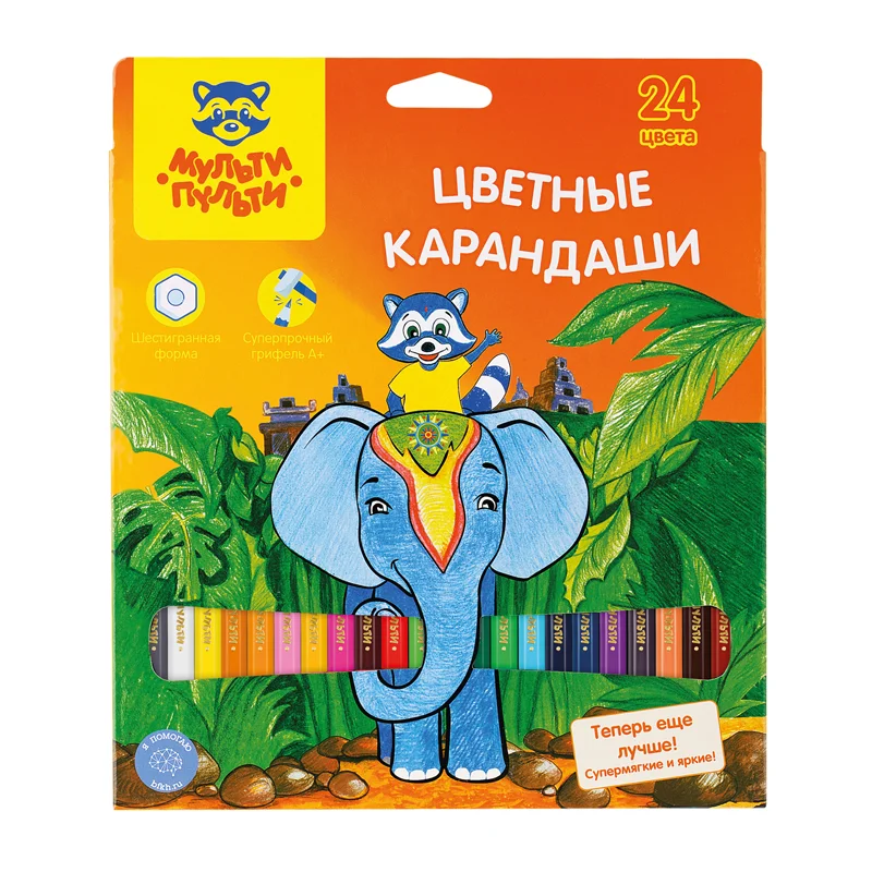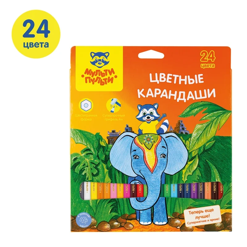 Карандаши цветные Мульти-Пульти 'Енот в Индии', 24цв., заточен., картон, европодвес