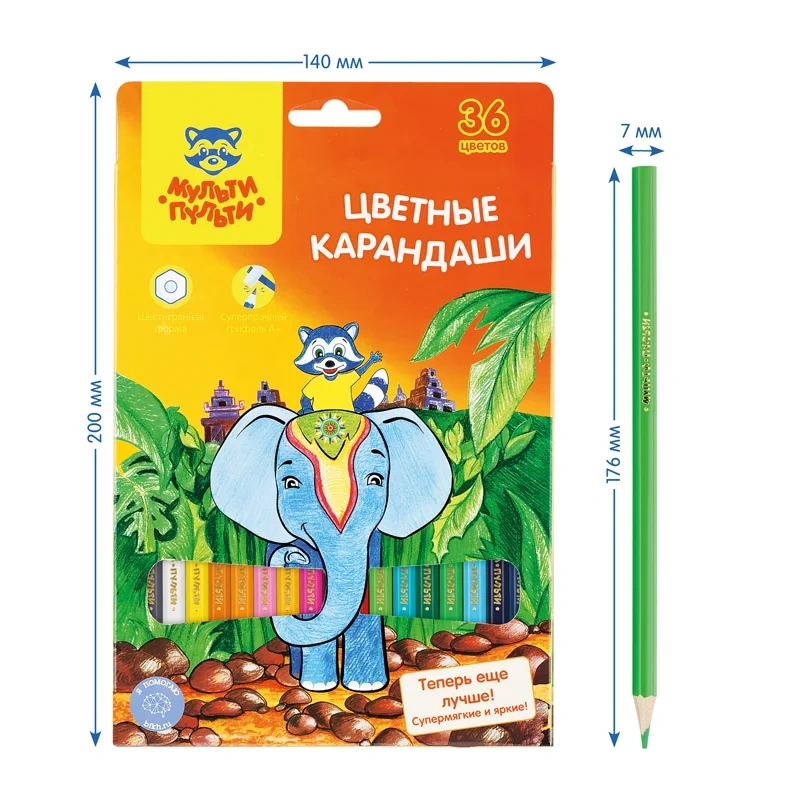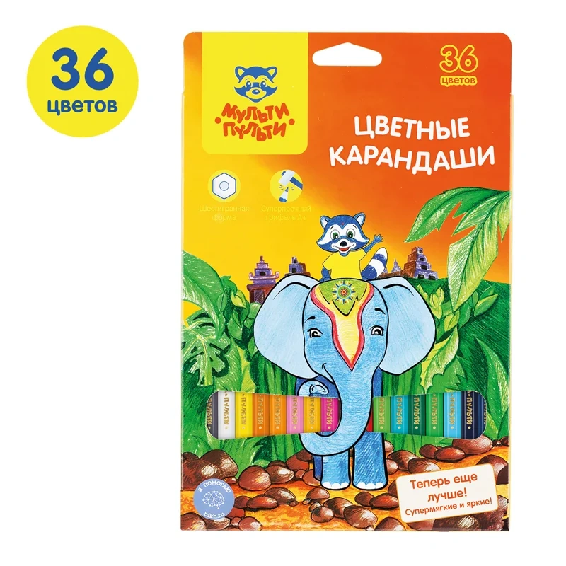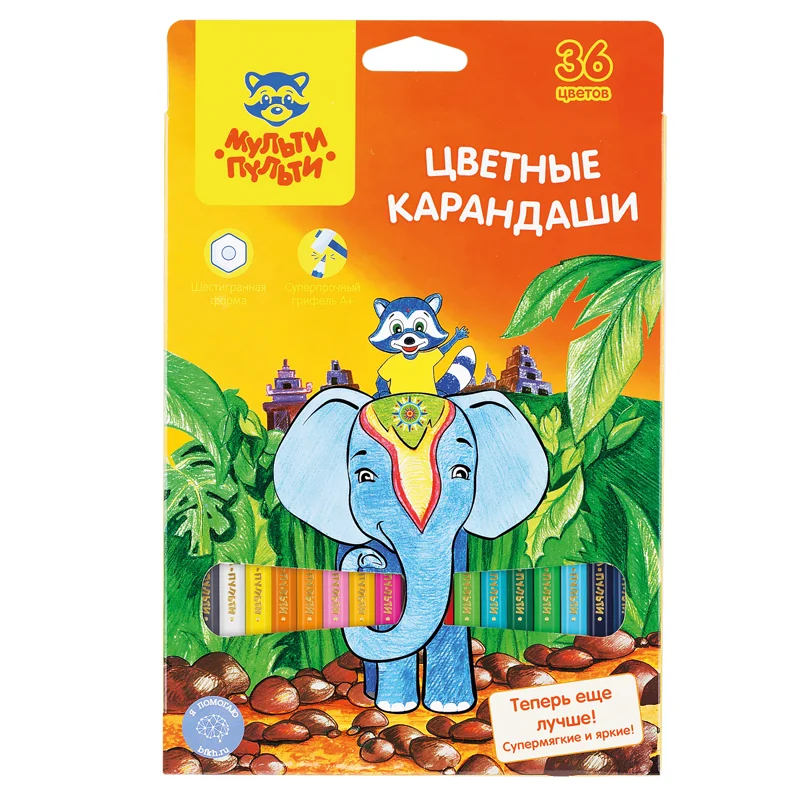 Карандаши цветные Мульти-Пульти 'Енот в Индии', 36цв., заточен., картон, европодвес