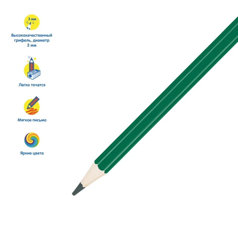 Карандаши цветные с заточенным грифелем. Яркие насыщенные цвета. Штрихи мягко ложатся на бумагу. Карандаши легко затачиваются. Упакованы в картонную лакированную коробку со склеенным европодвесом. Для детей старше 3-х лет. Цвета: красный, темно-красный, светло-красный, алый, ярко-оранжевый, темно-оранжевый, оранжевый, светло-оранжевый, желтый, ярко-розовый, розовый, фуксия, темно-фиолетовый, ярко-фиолетовый, фиолетовый, светло-фиолетовый, темно-синий, синий, светло-синий, лазурный, голубой, светло-голубой, сепия, темно-коричневый, коричневый, светло-коричневый, темно-зеленый, зеленый, бирюзовый, изумрудный, ярко-зеленый, светло-зеленый, черный, темно-серый, серый, белый.