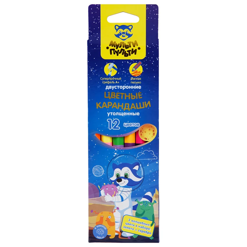 Карандаши цветные Мульти-Пульти 'Енот в космосе', 12цв., 06шт., двусторонние, утолщенные, заточен.,