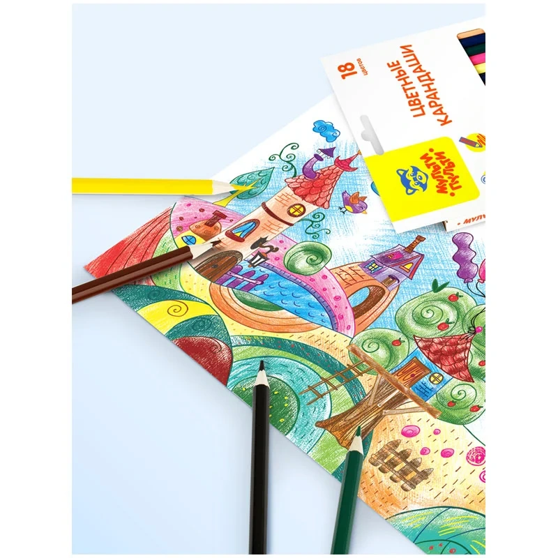 Карандаши цветные Мульти-Пульти 'Невероятные приключения', 18цв., заточен., картон, европодвес