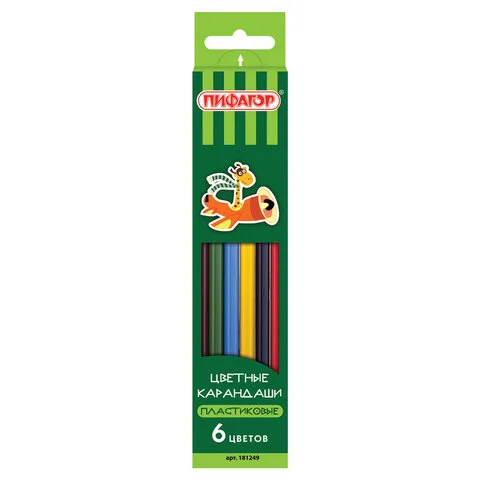 Карандаши цветные ПИФАГОР 'ЖИРАФ', 6 цветов, пластиковые, классические заточенные, 181249