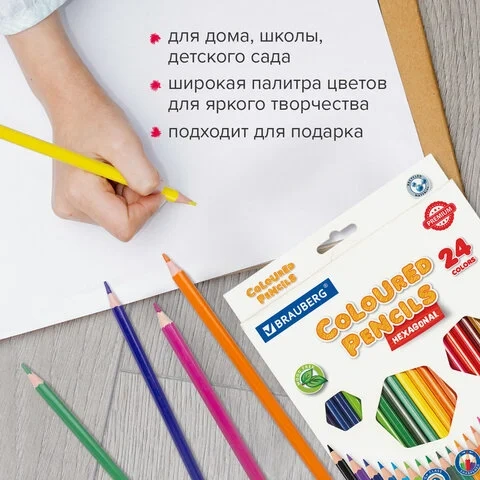 Карандаши цветные пластиковые BRAUBERG PREMIUM, 24 цвета, шестигранные, грифель мягкий 3 мм, 181668