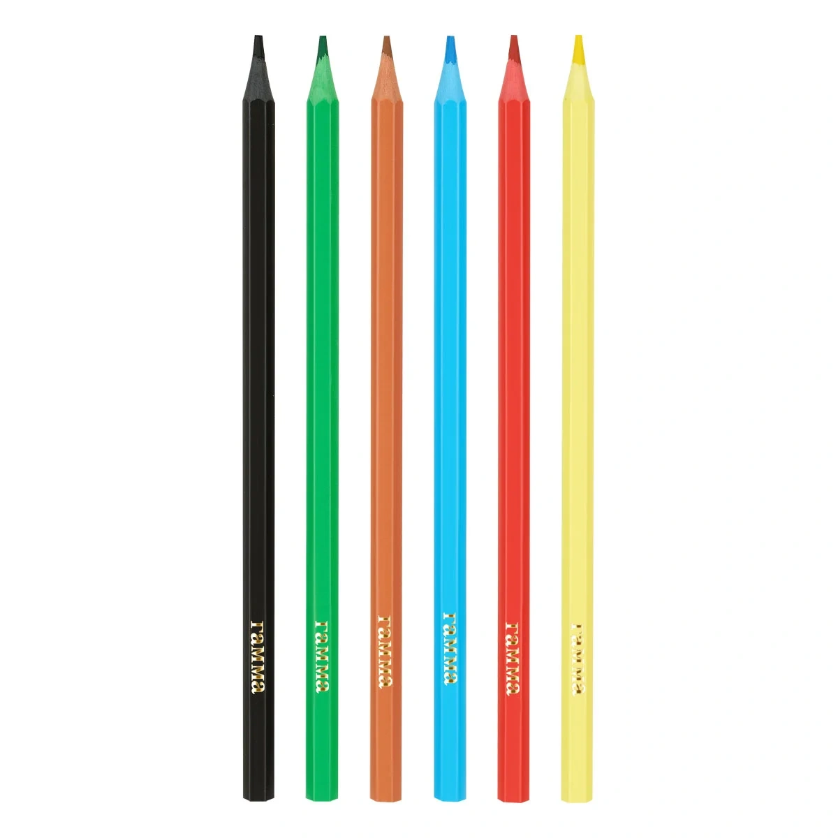 Цветные пластиковые карандаши ГАММА серии «Мультики» выполнены в стильном шестигранном корпусе из высококачественного пластика. В наборе 6 цветов: желтый, красный, зеленый темный, светло-голубой, темно-коричневый, черный. Диаметр грифеля – 3 мм. Проклеенный ударопрочный грифель не крошится во время заточки и не ломается даже после падения. Корпус карандаша диаметром 7 мм и длиной 174 мм изготовлен из пластика. За яркость и высокую укрывистость отвечают качественные пигменты в составе. Ребенку не придется сильно давить на карандаш – рисунок получится ярким и равномерно закрашенным. Упаковка – пластиковая коробка с европодвесом.