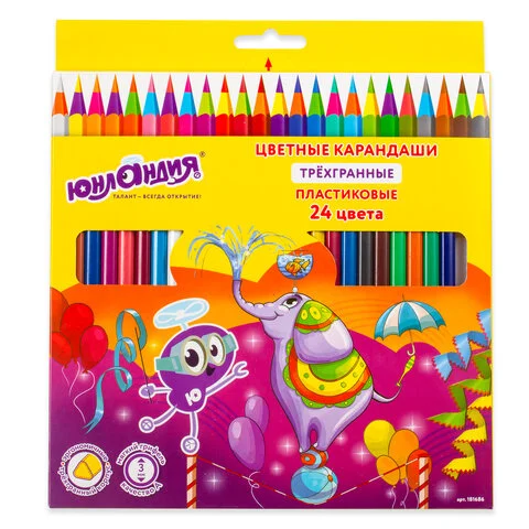 Карандаши цветные ЮНЛАНДИЯ 'КАРНАВАЛ', 24 цвета, пластиковые, заточенные, трехгранный корпус, 181686