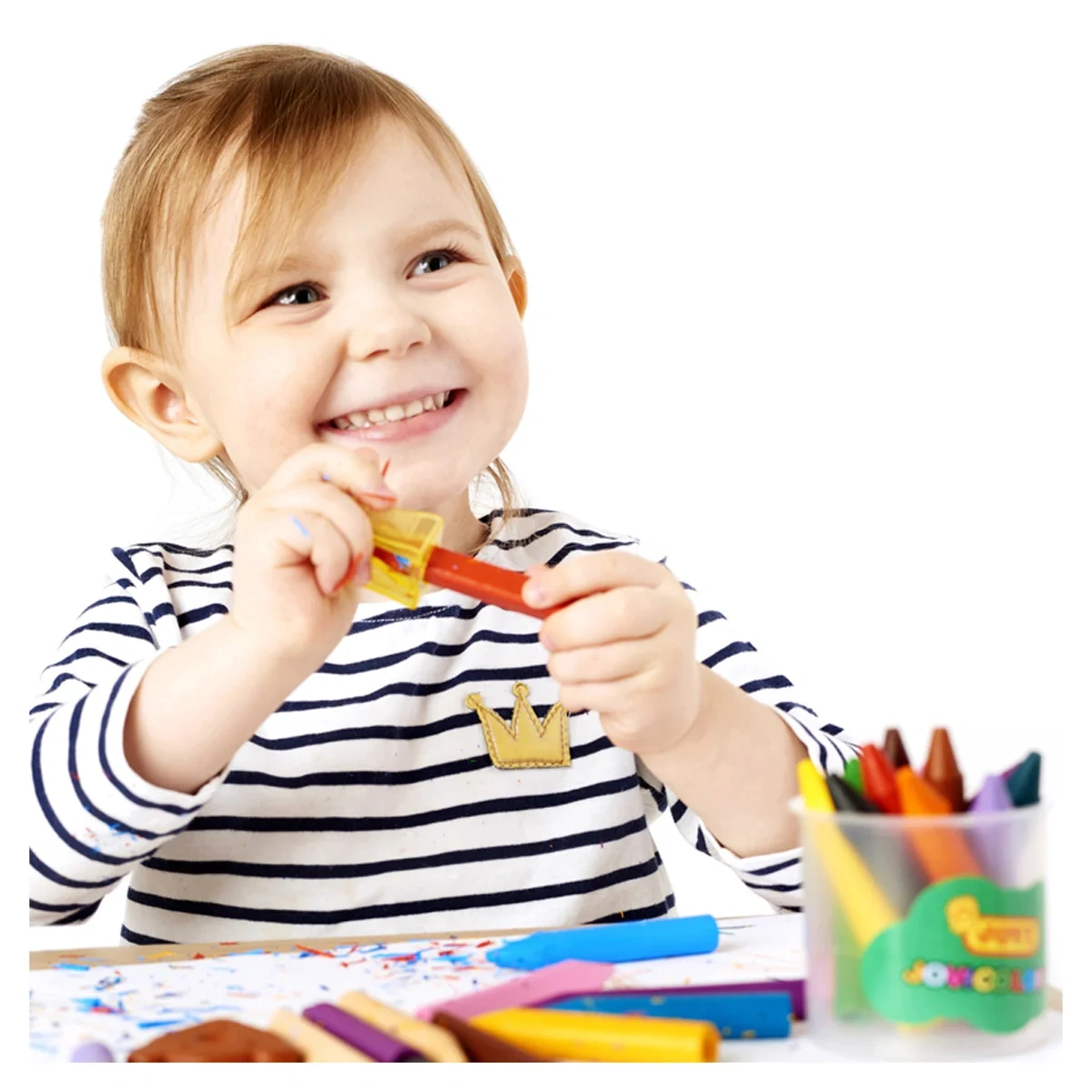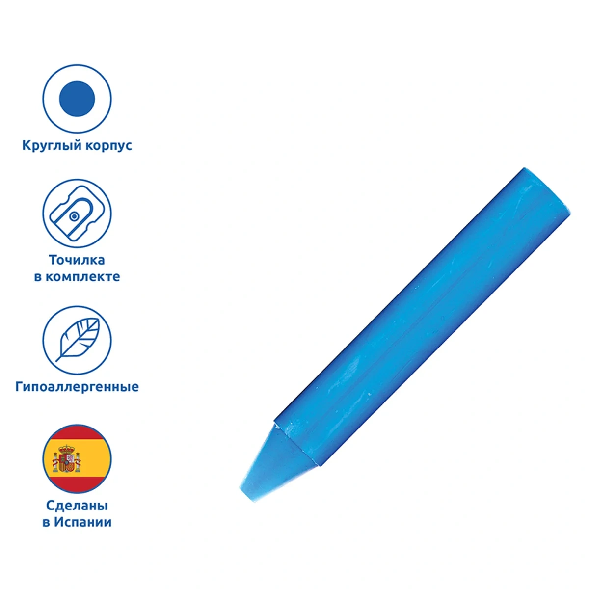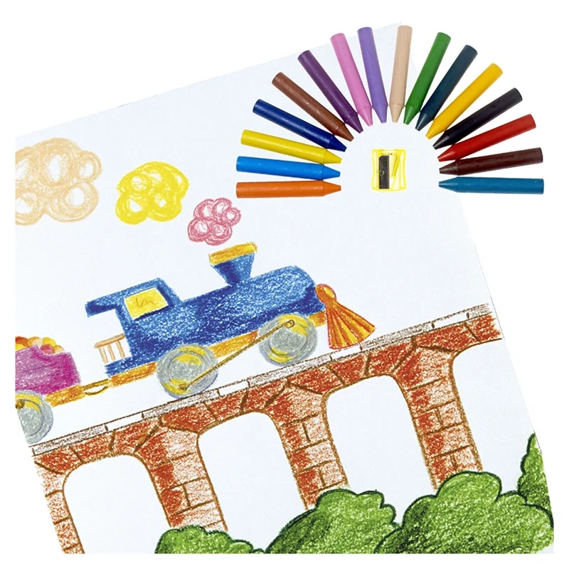 Набор восковых мелков 16 цветов и точилка в пластиковом стакане. Первые восковые мелки для малыша: диаметр 12 мм, длина 75 мм. Утолщенная форма корпуса специально создана для маленьких детских ладошек. Толстые, ровные, гладкие мелки на основе воска идеальны для первых попыток крохи рисовать и раскрашивать. Мелки мягко и без усилий рисуют на любой бумаге, кроме бумаги с глянцевой поверхностью, поэтому ребенку легко будет проводить первые штрихи и линии, а также раскрашивать. Изготавливаются из натуральных растительных компонентов, таких как натуральный воск, естественные пищевые красители. Благодаря своему составу они безвредны и очень прочны. Мелки не пачкают руки, не липнут, не выпотевают, не имеют запаха, не ломаются при падении, могут стираться ластиком. Могут использоваться очень долго, так как полностью состоят из пишущего стержня. Подходят для рисования по бумаге, картону, любым шероховатым поверхностям, проводят очень толстые и яркие, мягкие линии. Расширенная палитра из шестнадцати красивых чистых цветов (желтый, красный, телесный, зеленый, голубой, синий, фиолетовый, оранжевый, розовый, темно-зеленый, коричневый, черный, бирюзовый, светло-коричневый, сиреневый, светло-оранжевый). Гипоаллергенны, не содержат глютен.