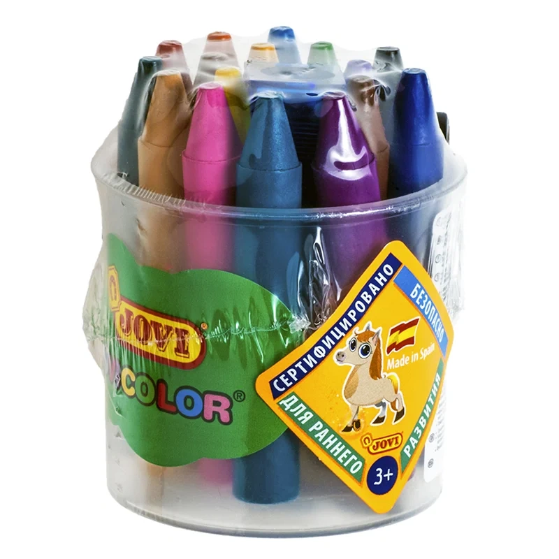 Карандаши восковые JOVI, 16цв., круглые, с точилкой, в стакане