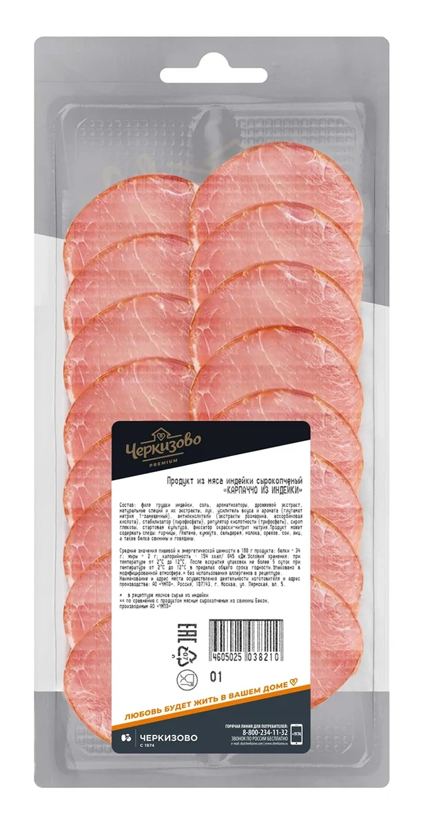 Карпаччо из индейки Черкизово сырокопченое нарезка, 85г