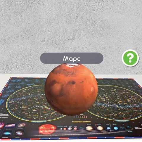 Скачайте приложение IQ Globen на IOS или Android, в главном меню выберите 'Карты', откройте карту звездного неба и наведите камеру на любой космический объект. Эффект дополненной реальности не заставит себя ждать. Герои приложения помогут Вам в освоении космоса.