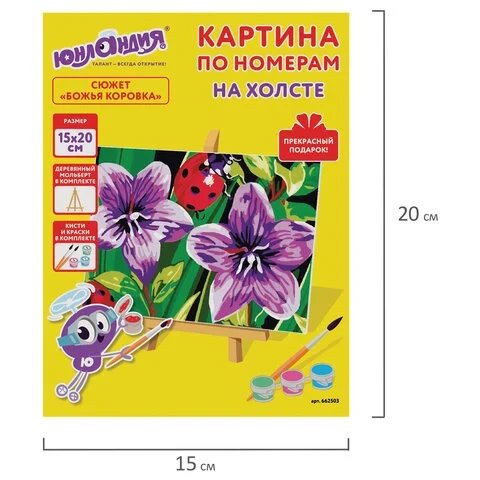 Картина по номерам 15х20 см, ЮНЛАНДИЯ 'Божья коровка', на подрамнике, акрил, кисти, 662503