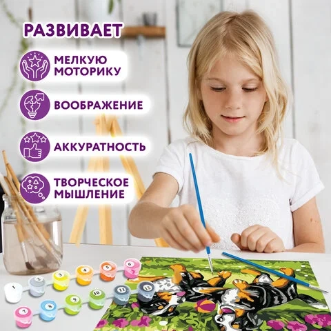 Краски укрывистые, быстро сохнут без потери цвета. Каждый цвет в наборе подходит под конкретный номер, благодаря чему нет необходимости смешивать краски. Однако, если Вы хотите добиться нового оттенка, наши краски с легкостью позволят это сделать, благодаря отличной смешиваемости.