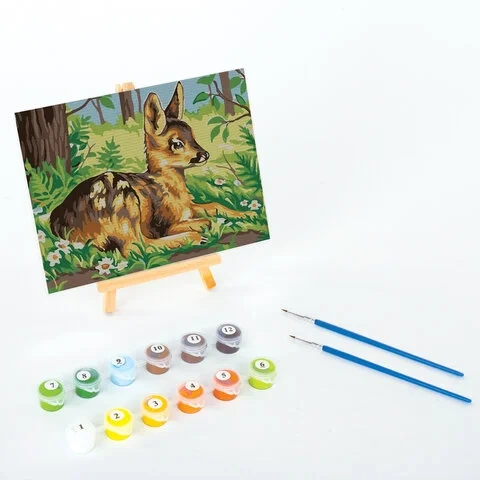 Представлен эксклюзивный сюжет по картине российского художника Разживина И.В. В набор входит: 1 хлопковый холст на подрамнике с контуром, 1 лист бумаги для тренировки, набор из 29 акриловых красок объемом 3 мл каждая, 3 синтетические кисти и комплект металлических креплений для подвешивания на стену.
