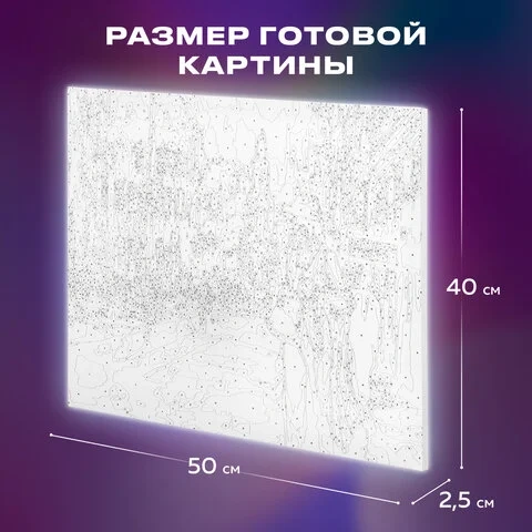 | Комплектация | акриловые краски, кисть, крепеж, лист бумаги для тренировки, холст на подрамнике |